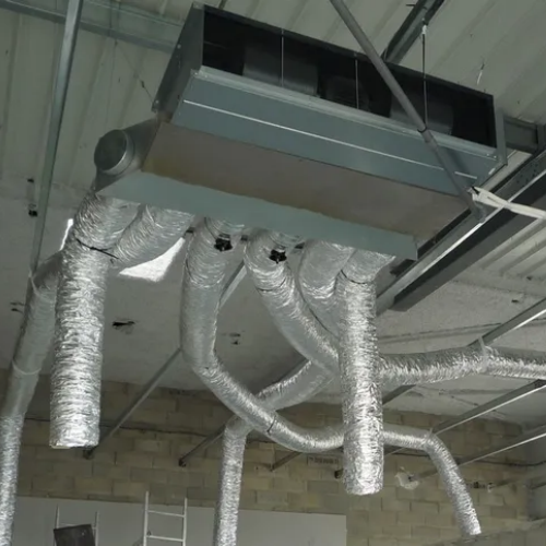 Les conduits sont cachés dans les plafonds ou les murs, ne laissant apparaître que de petites grilles discrètes. Cette installation préserve l'esthétique intérieure et s'intègre parfaitement à tout décor.